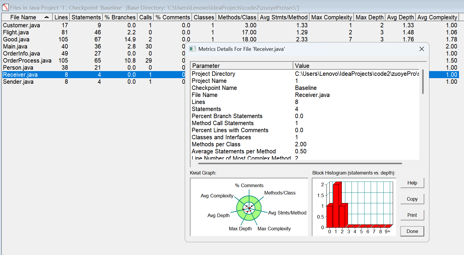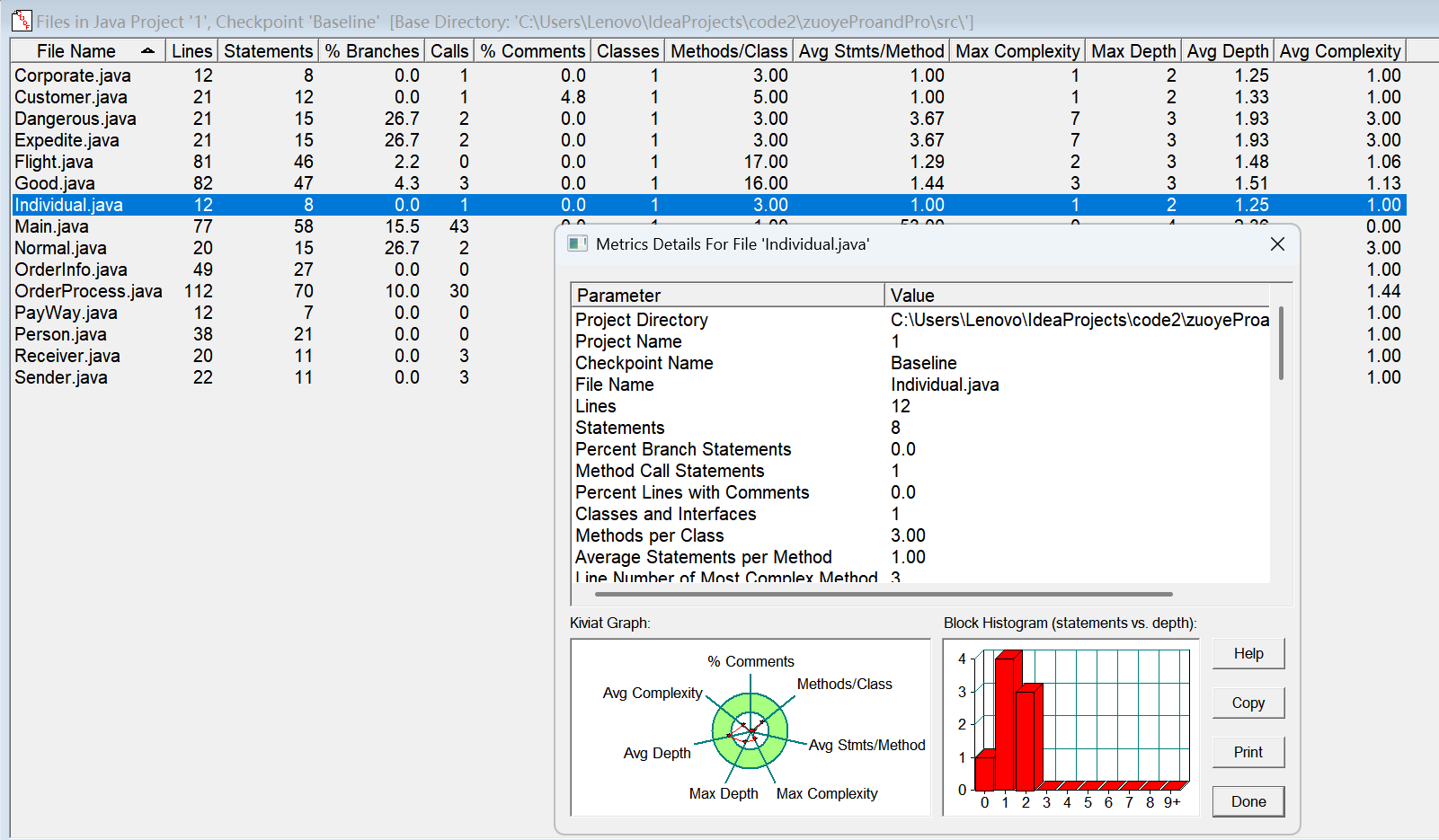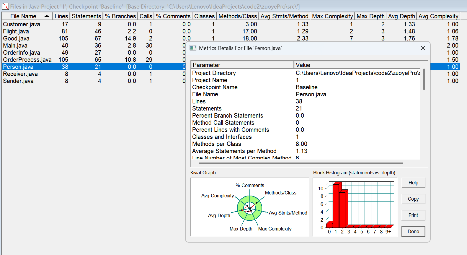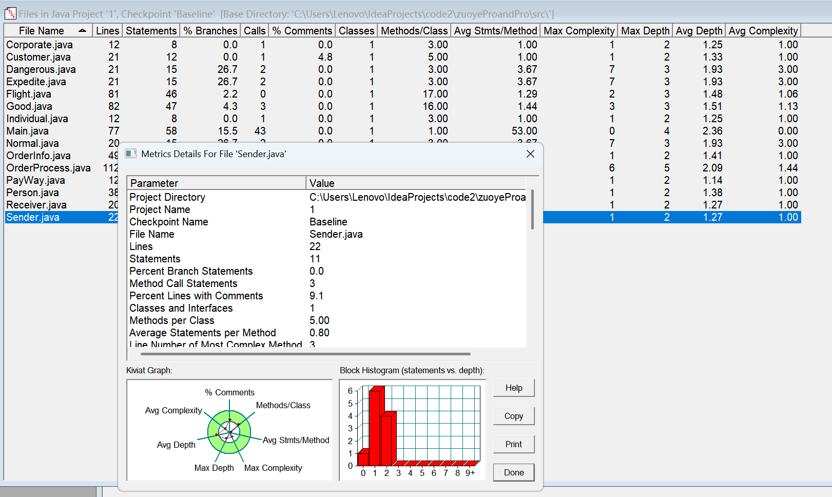 对于类,有OCavg和WMC两个项目,分别代表类的方法的平均循环复杂度和总循环复杂度。