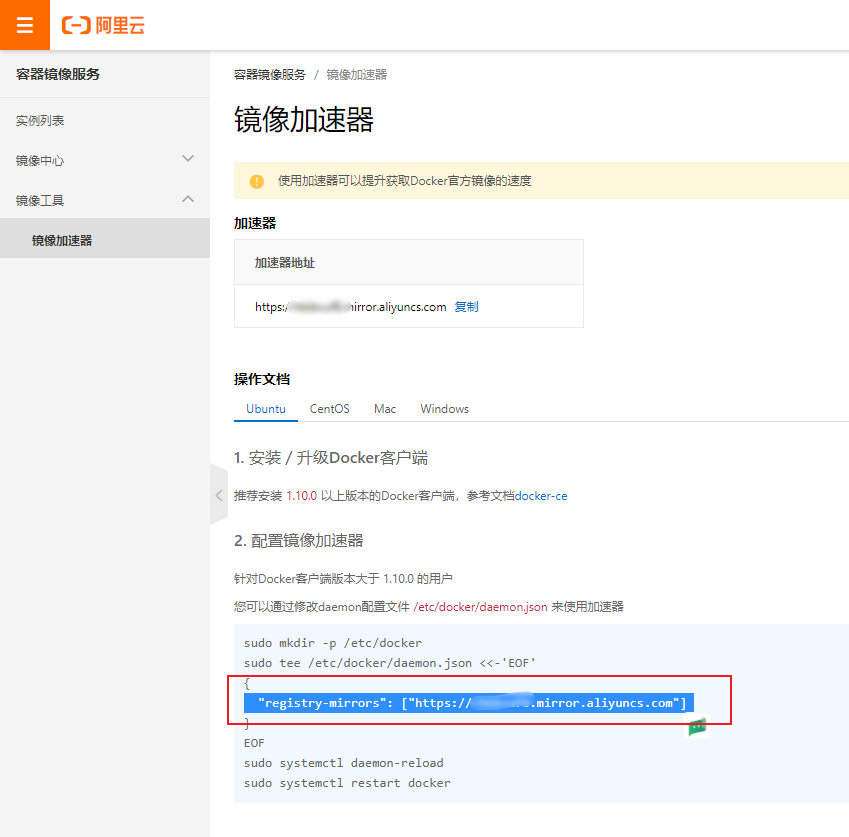 4.配置镜像源加速器