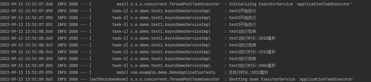 执行结果如下:总执行时间与执行最长的 test3()方法的时间相近