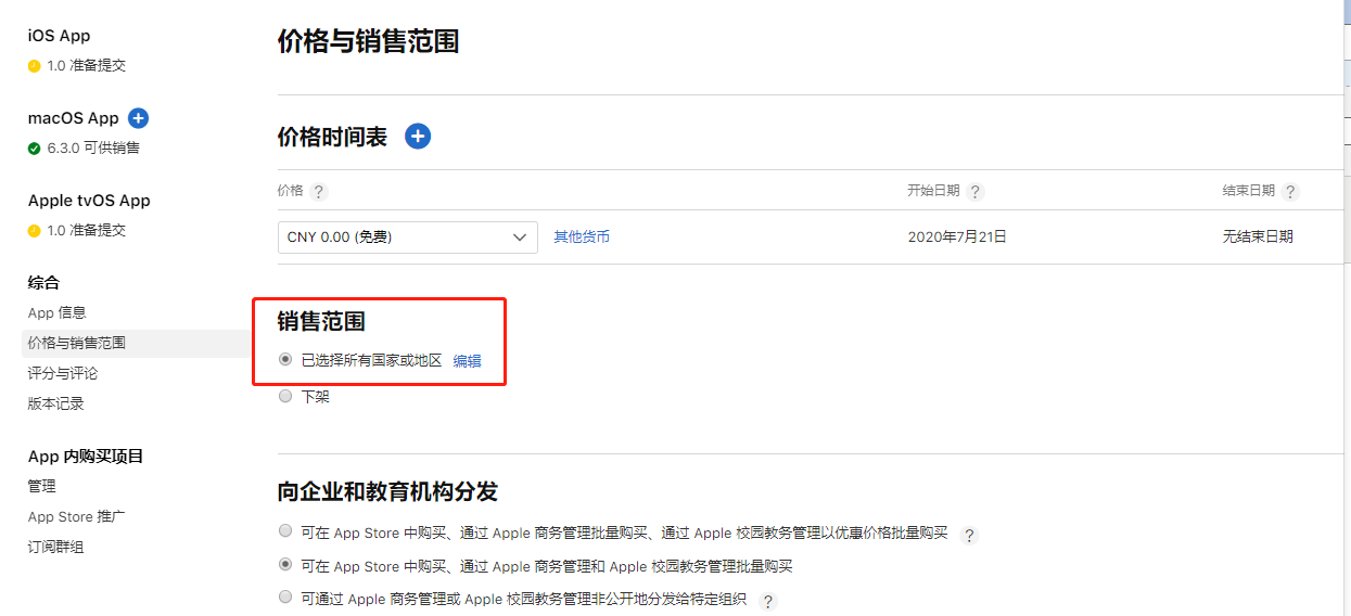 1、限定销售范围,如果只在国内销售的话,则更改销售地区。
