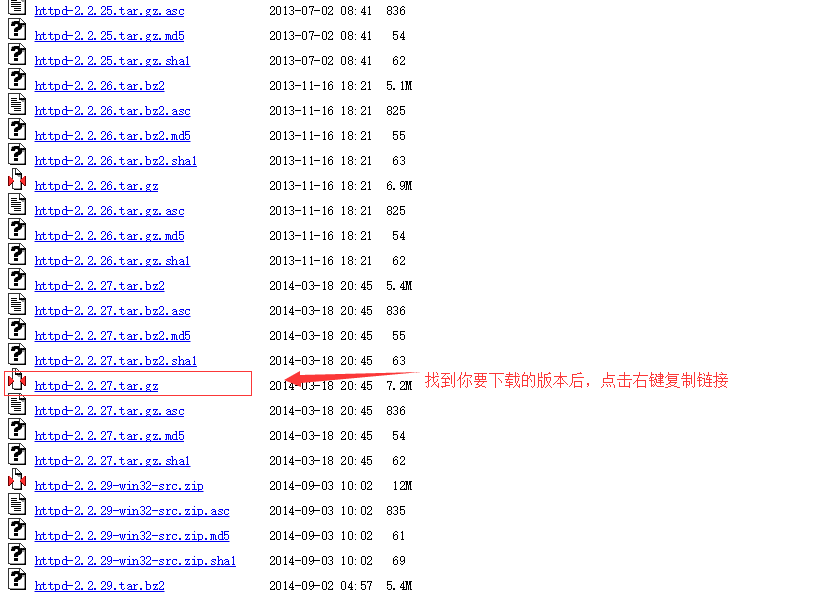 在百度上搜索你要安装的apache的httpd版本