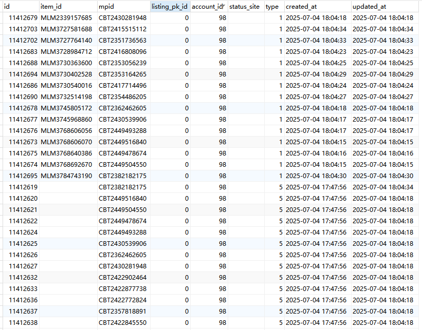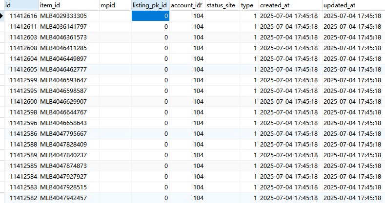 拉取 本土账户的 item_id 到 yibai_mercadolibre_listing_site 表