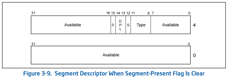 Figure 3-9 shows the format of a segment descriptor when the segment-present flag is clear. When