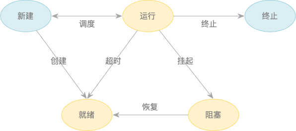 4、等待(WAITING):接收事件通知后或系统中断后进入等待