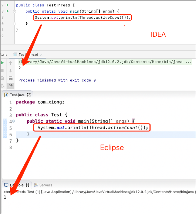 但如果使用的IDE是IDEA,那么当前活动的线程数量可能是2;