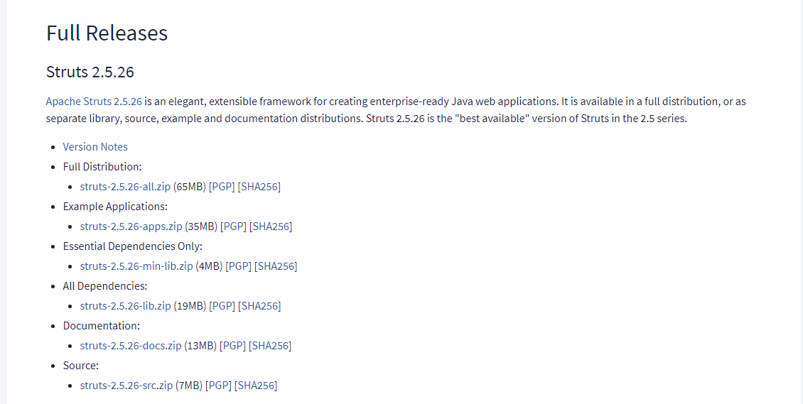首先进入下载官网http://struts.apache.org,进入下载页面