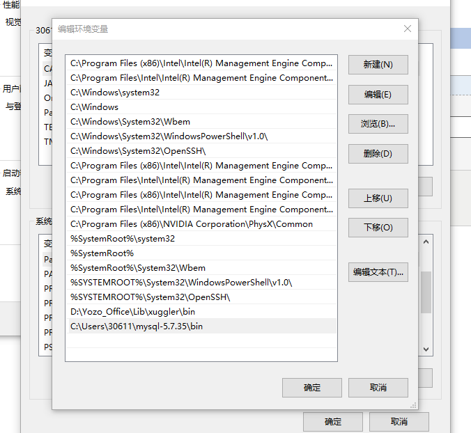 在系统变量里有个Path变量,编辑,把刚才你解压的文件夹其中的bin文件夹的目录添加到这里,像这样