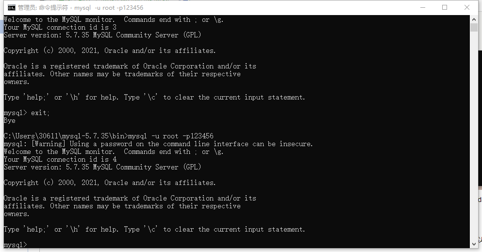 输入mysqld -install(安装mysql),安装完成后,再输入mysqld --initialize-insecure --user=mysql初始化数据文件。