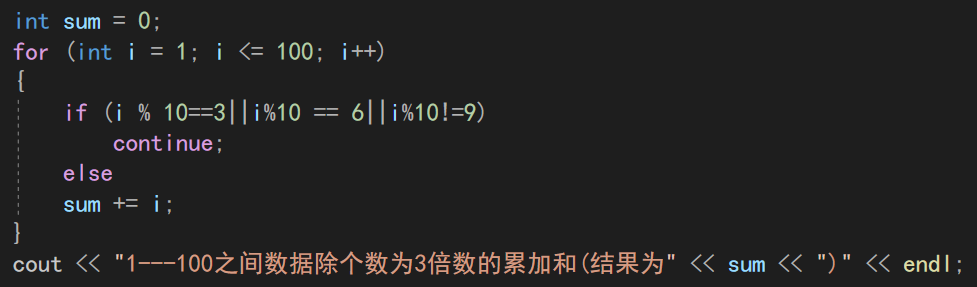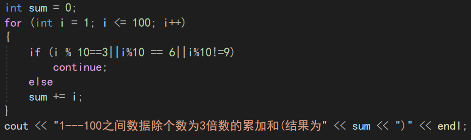 7.将1-100中的数进行累加,个位数为3的整倍数的不需要加入累加,打印出最终结果。