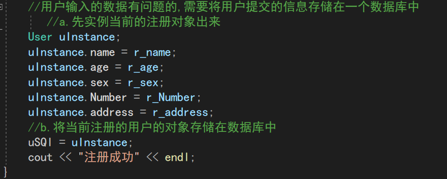 实例当前注册的对象 并将注册的用户信息存储在全局变量中(存贮在数据库中)