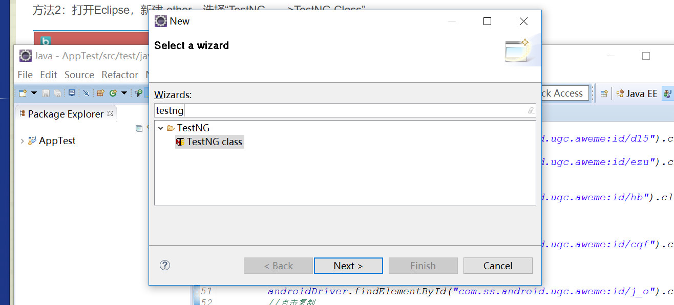 方法一:打开Eclipse,新建-other,选择“TestNG——>TestNG Class”