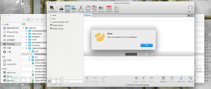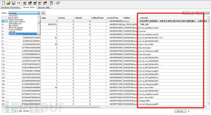成功打开微信的数据库文件: