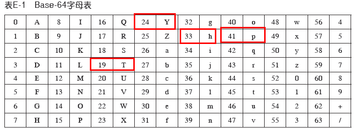 然后根据下面的Base64字母表,就可以得出,24 19 41 33,分别为 Y T p h;所以 a:a 按照Base64编码结果为 YTph,明白了么?