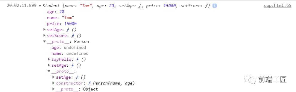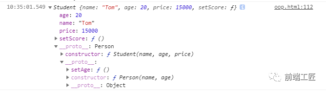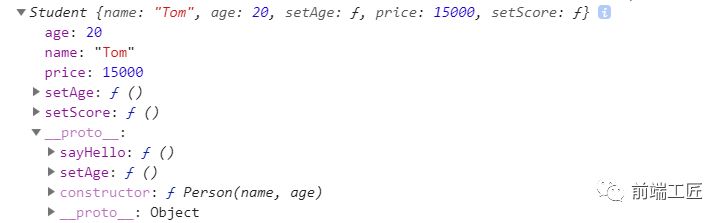 但这种方式实现的本质是通过将子类的原型指向了父类的实例,所以子类的实例就可以通过proto__访问到 Student.prototype 也就是Person的实例,这样就可以访问到父类的私有方法,然后再通过__proto指向父类的prototype就可以获得到父类原型上的方法。于是做到了将父类的私有、公有方法和属性都当做子类的公有属性