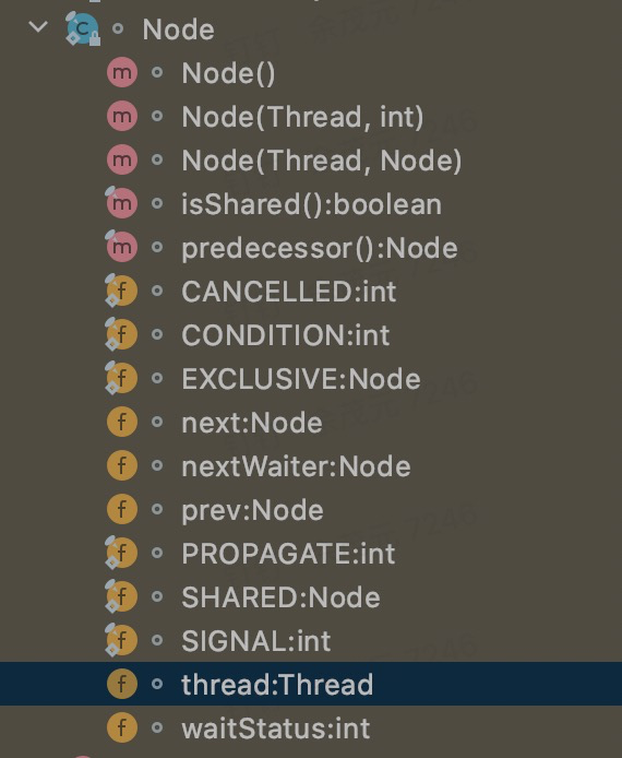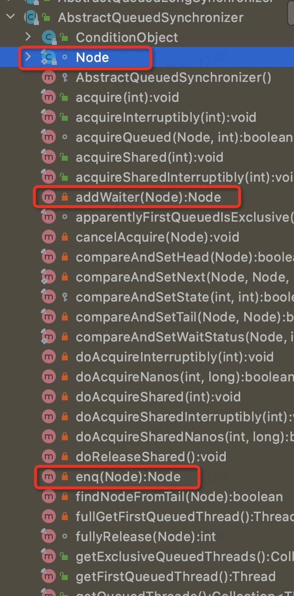 看下AQS的属性,Node就是双向链表的每个节点,标记的两个方法是维护双向链表的方法
