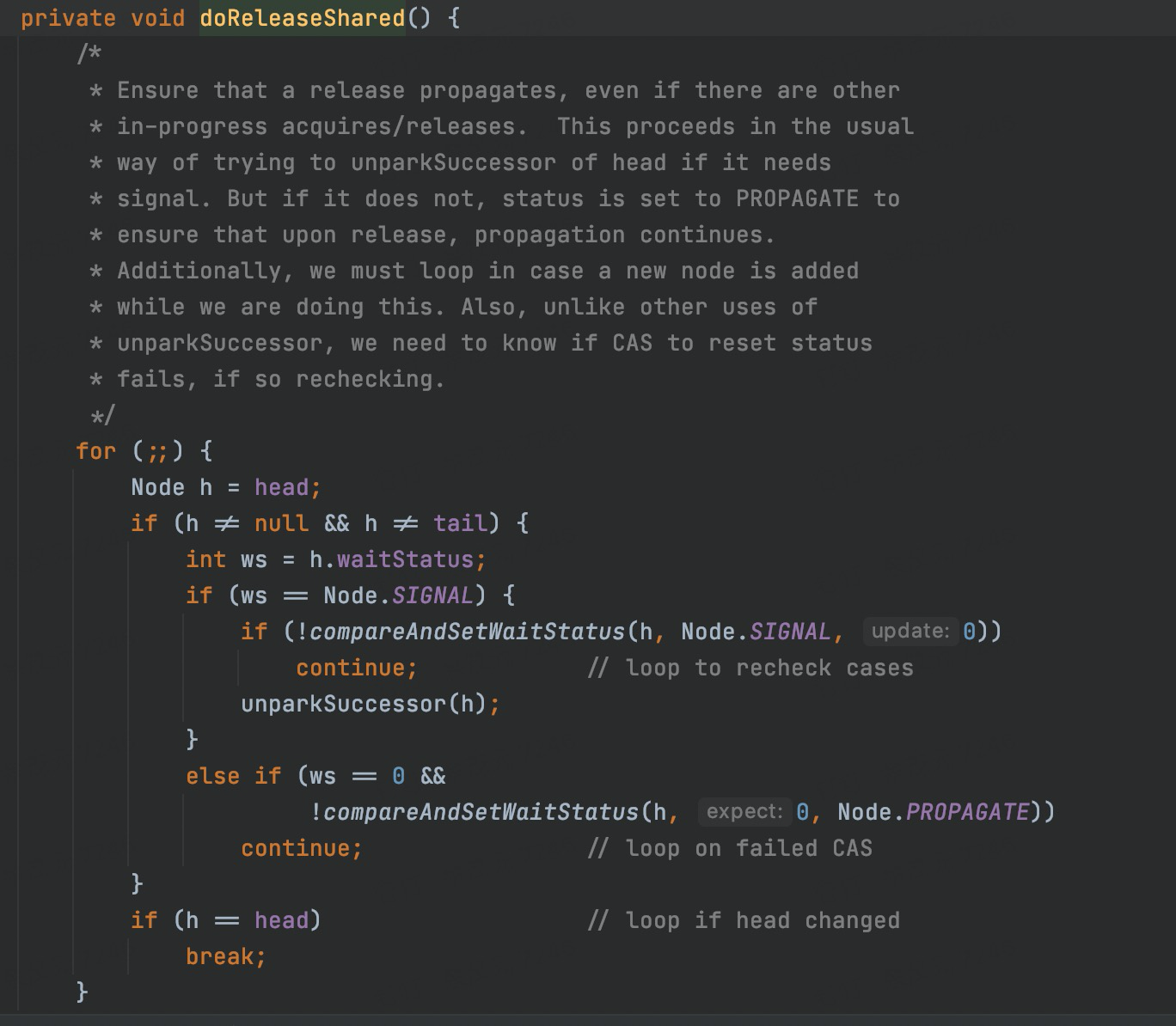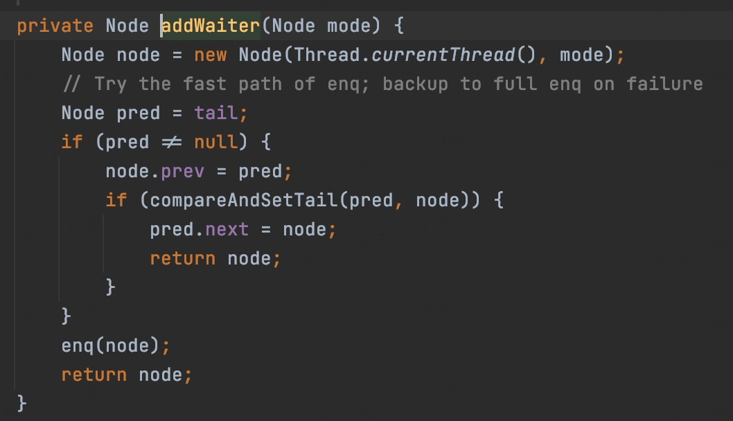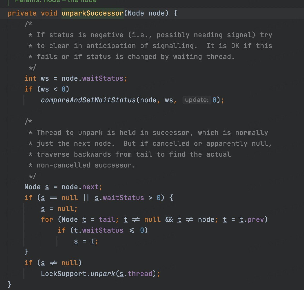 上面代码的作用主要是将被取消的节点跳过去,直接把当前的节点已往前第一个不是取消状态的节点建立关系,可以理解清楚无用状态的节点。