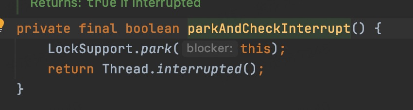 一个阻塞队列已经形成了,然后可以想到应该就算把线程threadB给park起来,继续往下看