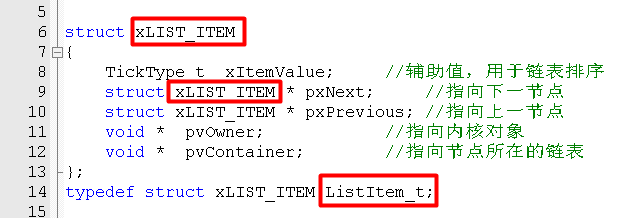 struct xLIST_ITEM * pxNext; //指向下一节点