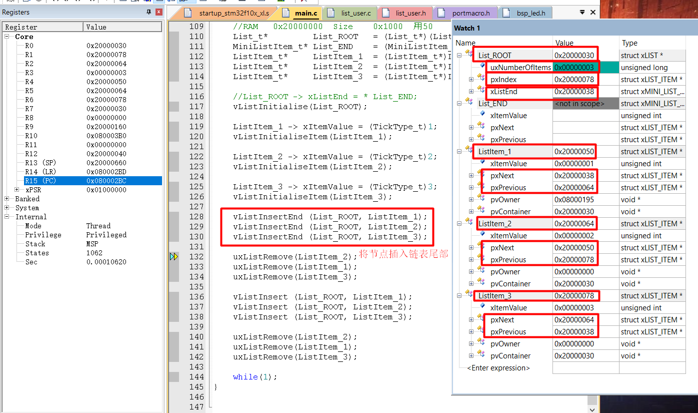 (pxList->uxNumberOfItems) ++; //操作根节点