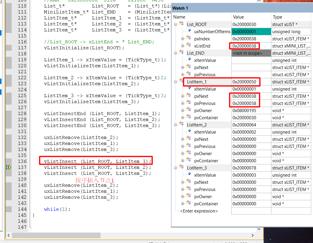 ListItem_t * pxIndex = pxList->pxIndex; //pxIndex表示插入点