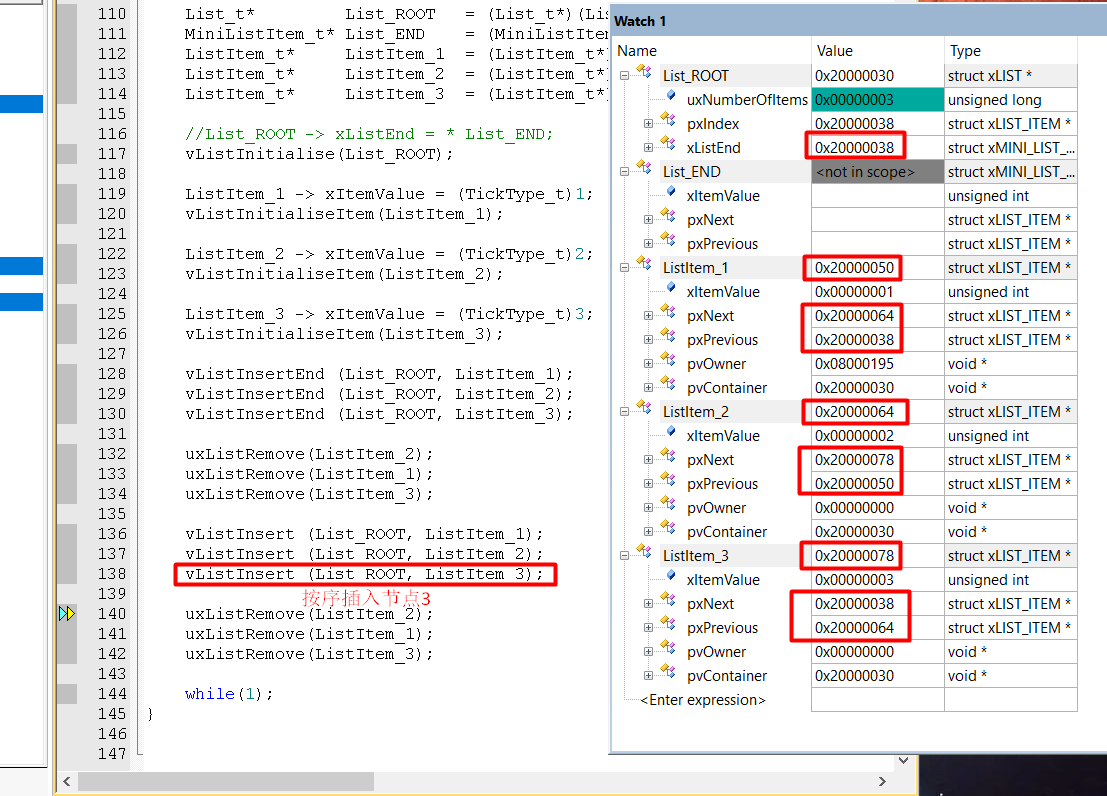 pxNewListItem->pxNext = pxIterator; //插入pxIterator前