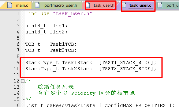 如图,把任务栈的定义从h文件移到c文件中,问题解决