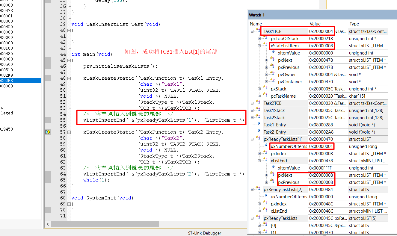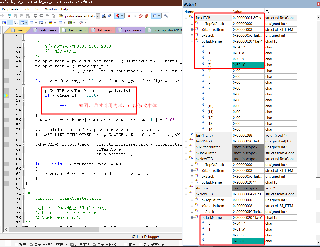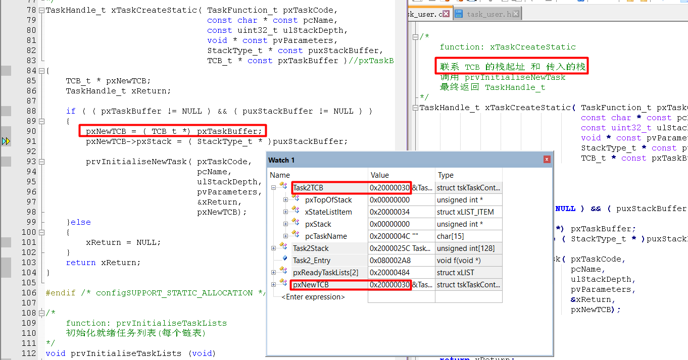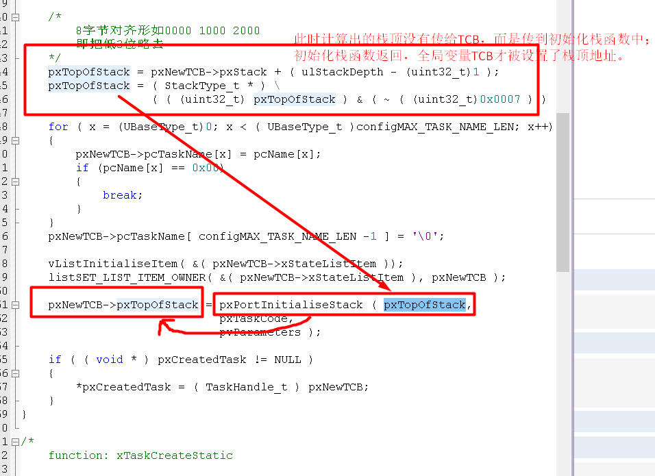 直到函数返回到prvInitialiseNewTask,TCB才获取了变化后的栈顶地址;