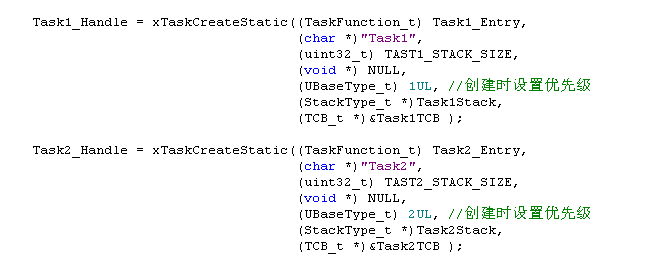 3.静态创建任务的函数修改后,还需在调用它的地方完善形参: