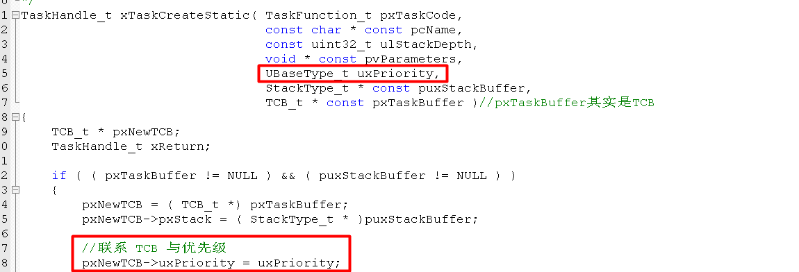 2.修改任务创建函数原型,并且在函数中,要设置 TCB 的优先级