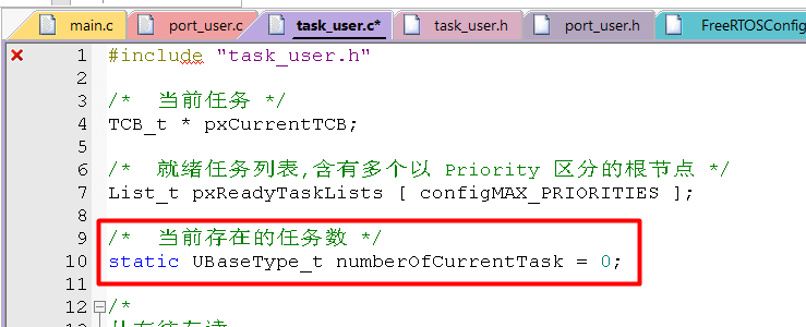 为了能在第一次使用时调用初始化,我们设置一个变量 numberOfCurrentTask 用来记录当前已创建的任务数,初始值为0;