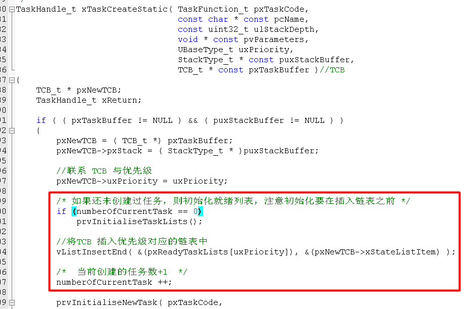 5.把任务插入到对应优先级链表的过程,和设置TCB的优先级一样,都加入到任务创建函数中,这样使用任务时只需创建就行了;