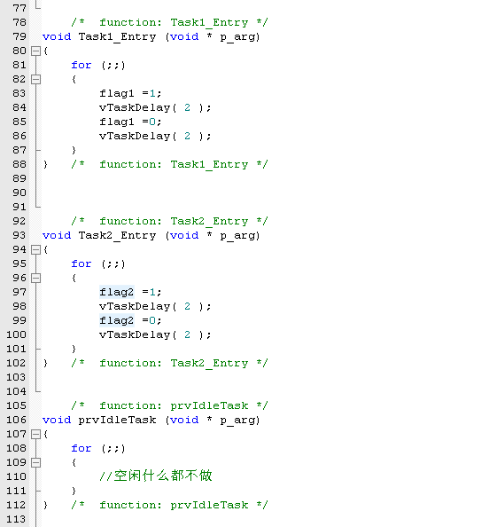 7.写一个简单的main函数,任务1、2都只改变一个变量然后TaskDelay,主要用来观察到底是哪个任务占用了CPU;