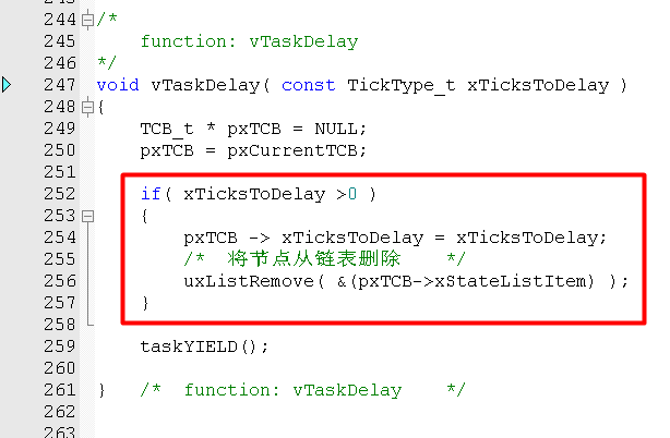 那么在TaskDelay延时函数中,不仅需要设置任务的延时时间,还需要把任务从就绪任务列表中删除;