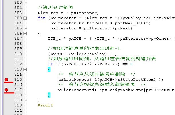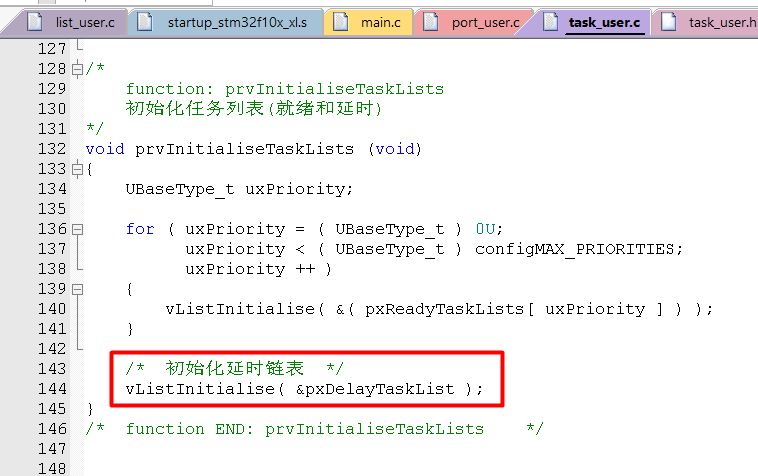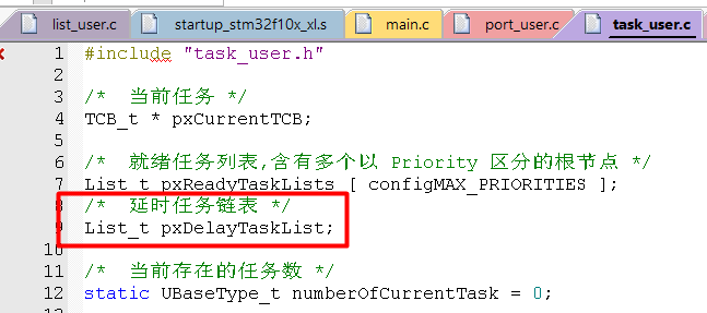 由于链表在使用前需要初始化,在原来的初始化链表函数中,我们只初始化了就绪列表,现在还要初始化延时链表: