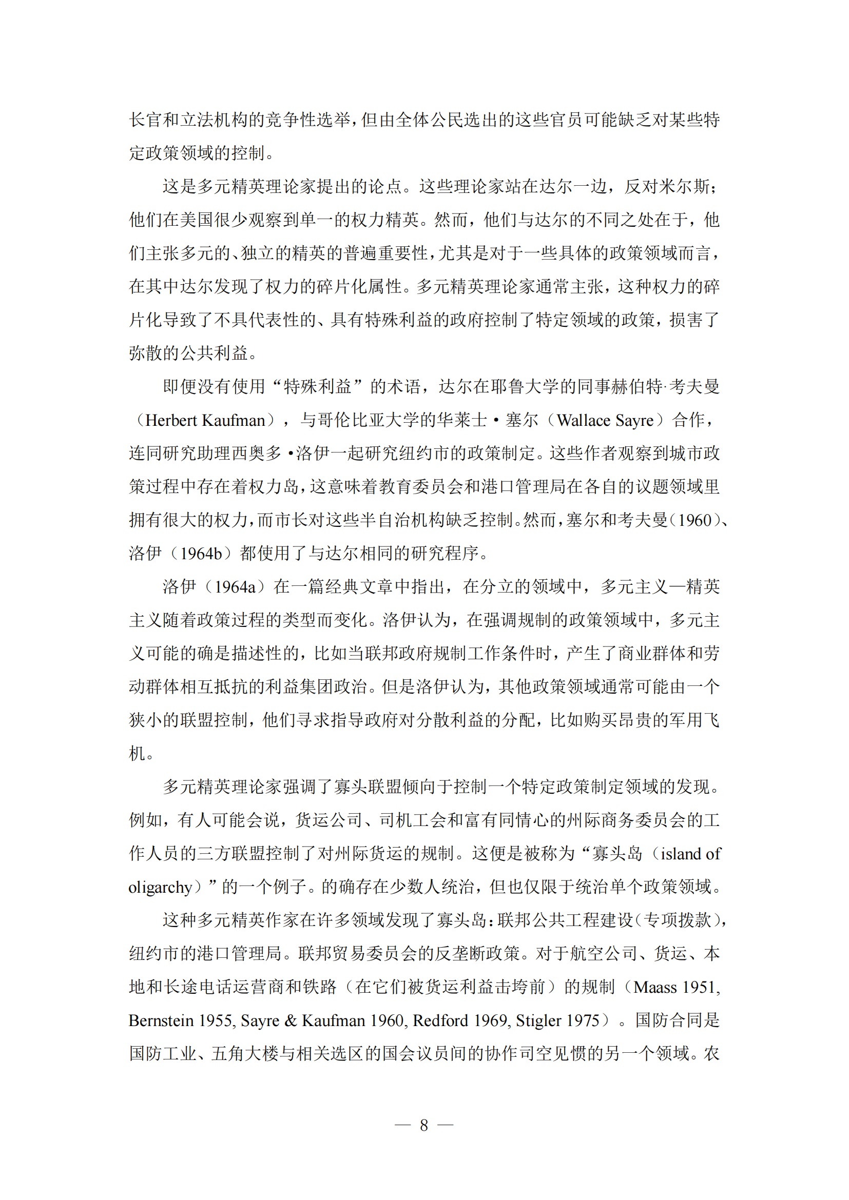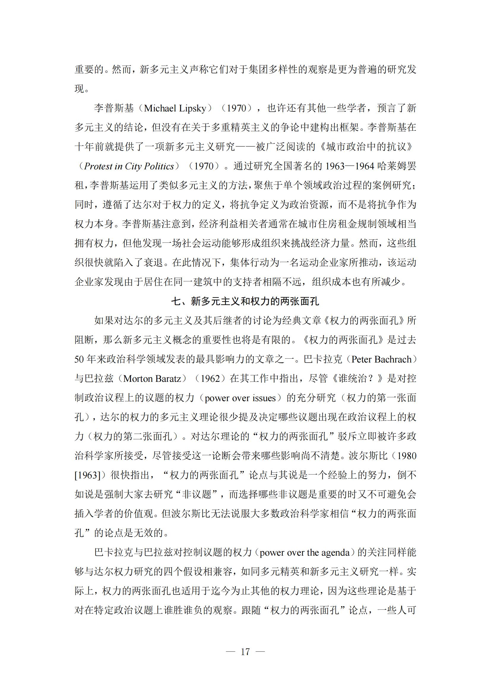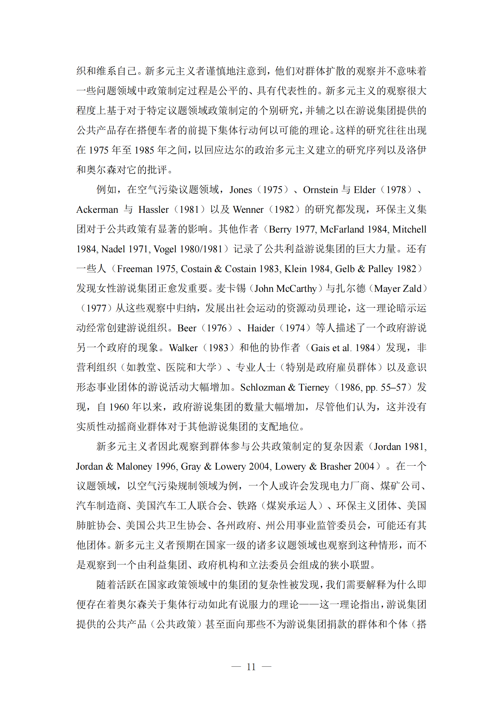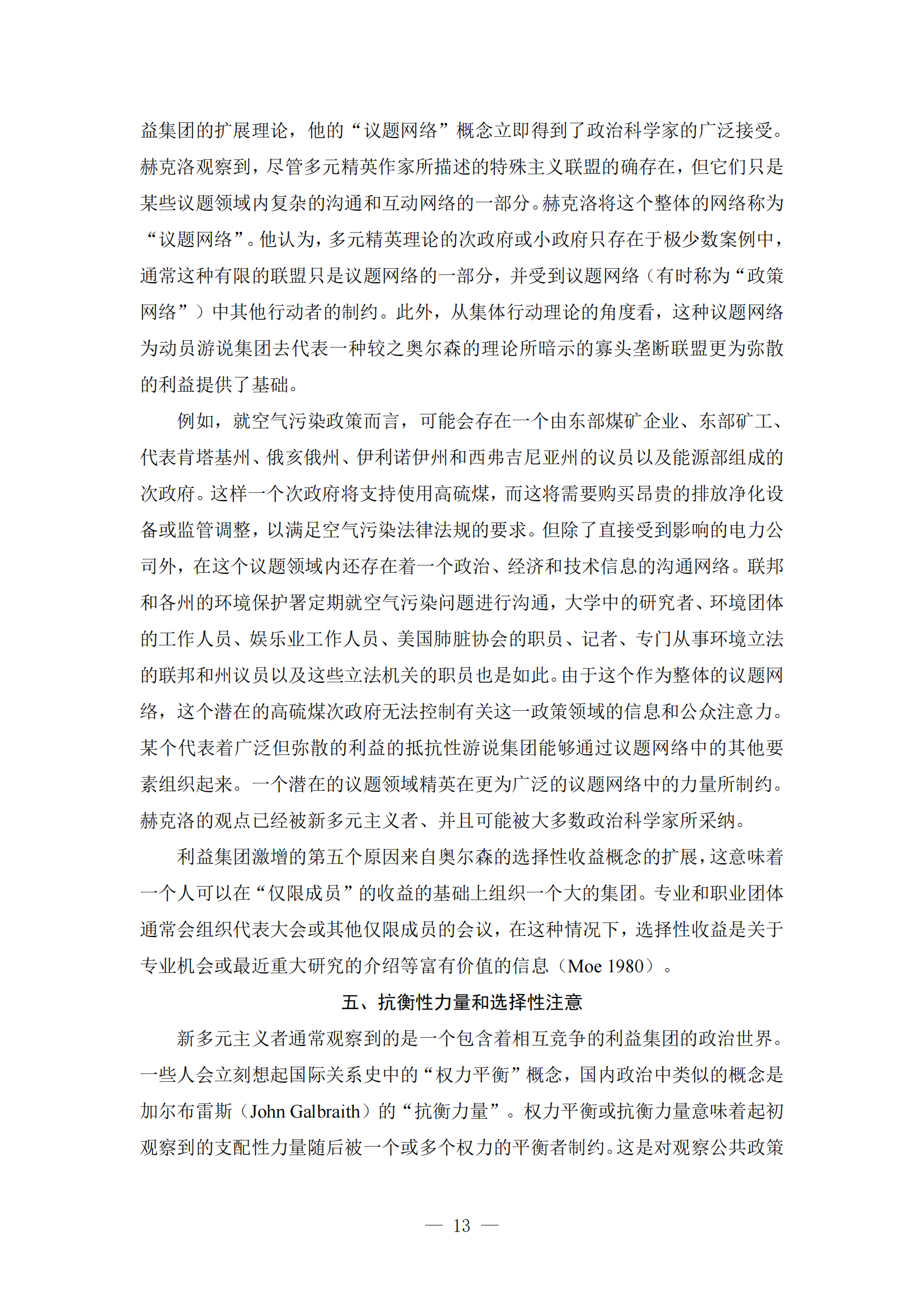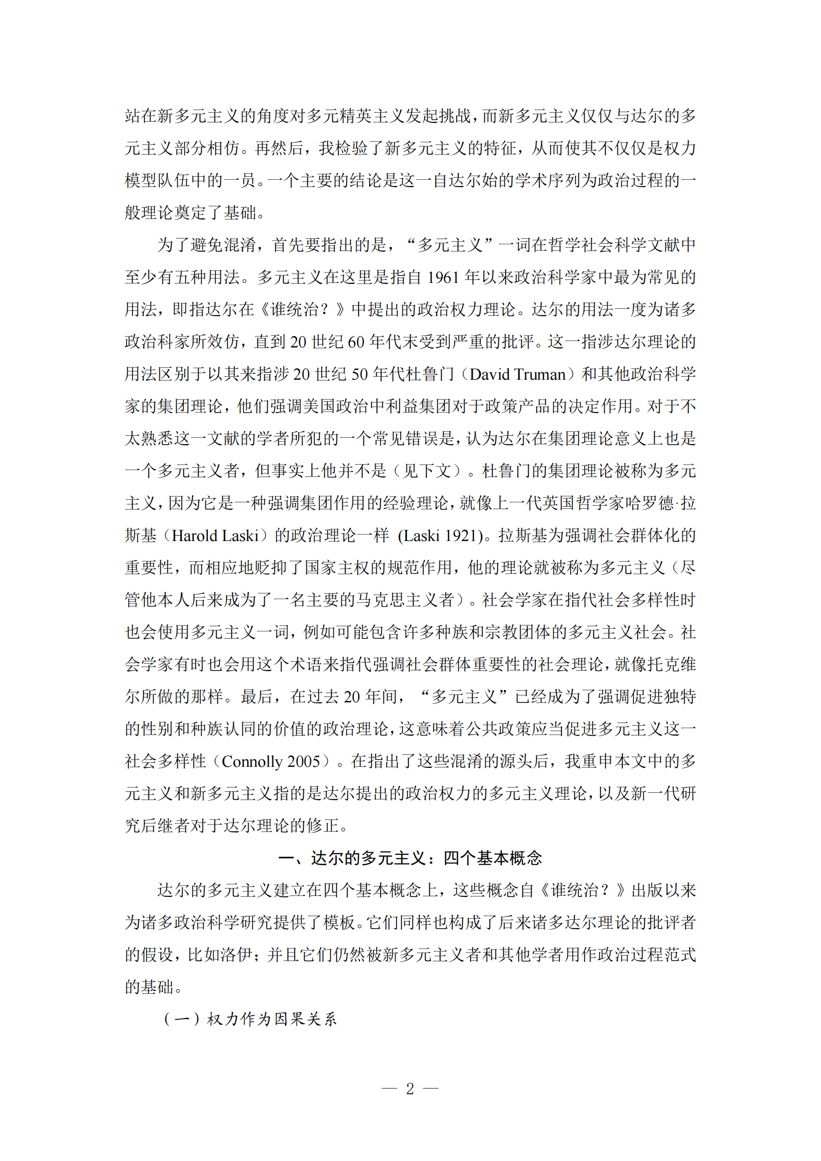 新多元主义同精英主义、多元主义和法团主义等一样,在涉及公共政策领域中的权力结构和政策制定的一众研究发现和社会科学模型中占有一席之地。发端于罗伯特·达尔在《谁统治?》(1961)中建构的多元主义模型,新多元主义通过去除或是修正达尔的一些想法,并同时增添了对于议程建立、集体行动逻辑、具有特殊利益的次政府、倡导联盟和政治过程理论的关照,从而得以在美国政治研究中不断演化。尽管新多元主义通常是关于政治系统中复杂行动的发现,但是新多元主义既不假设这种复杂性暗示了代表制的公平性,也不假设利益集团的存在将消解政府机构的自主行动。