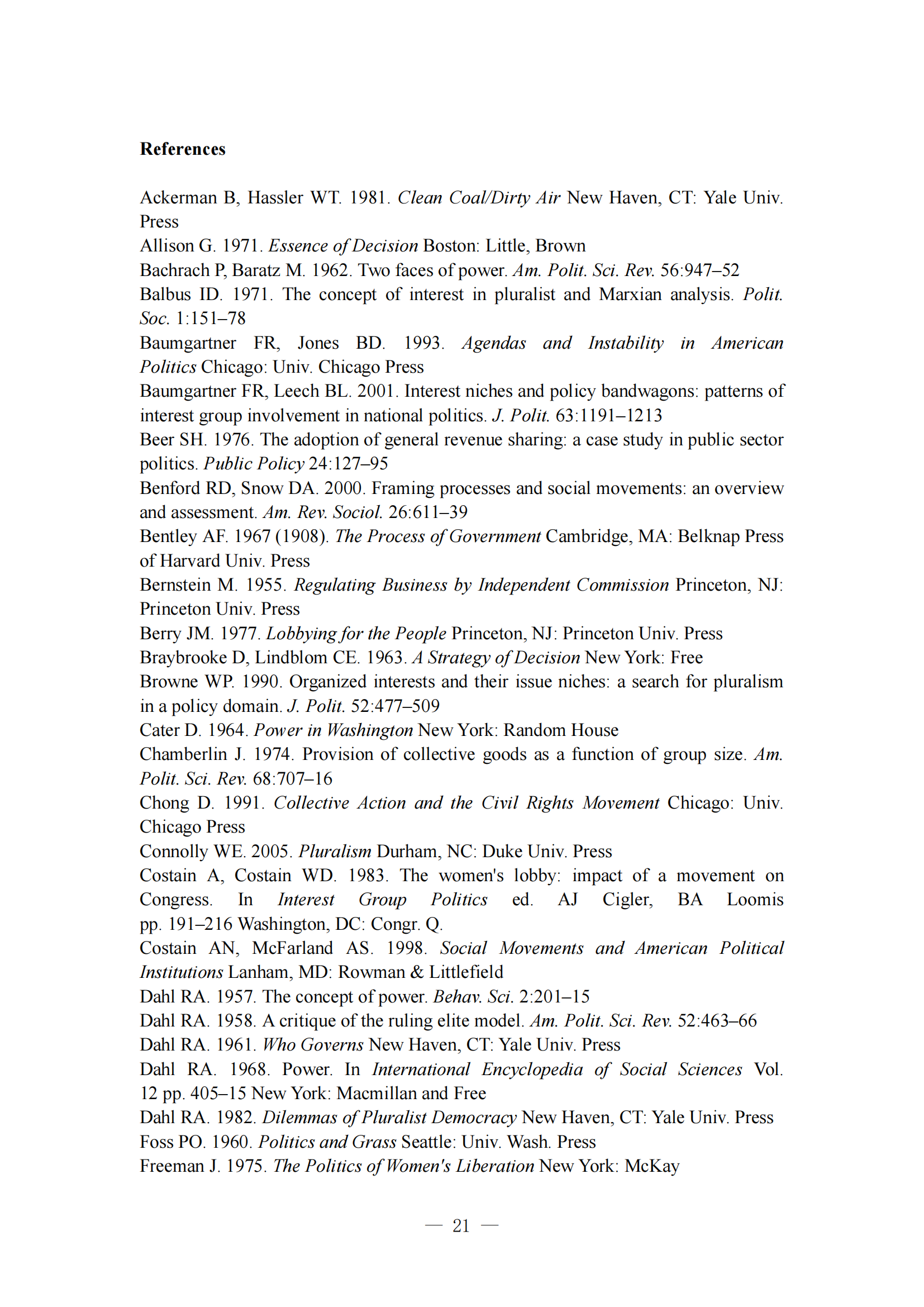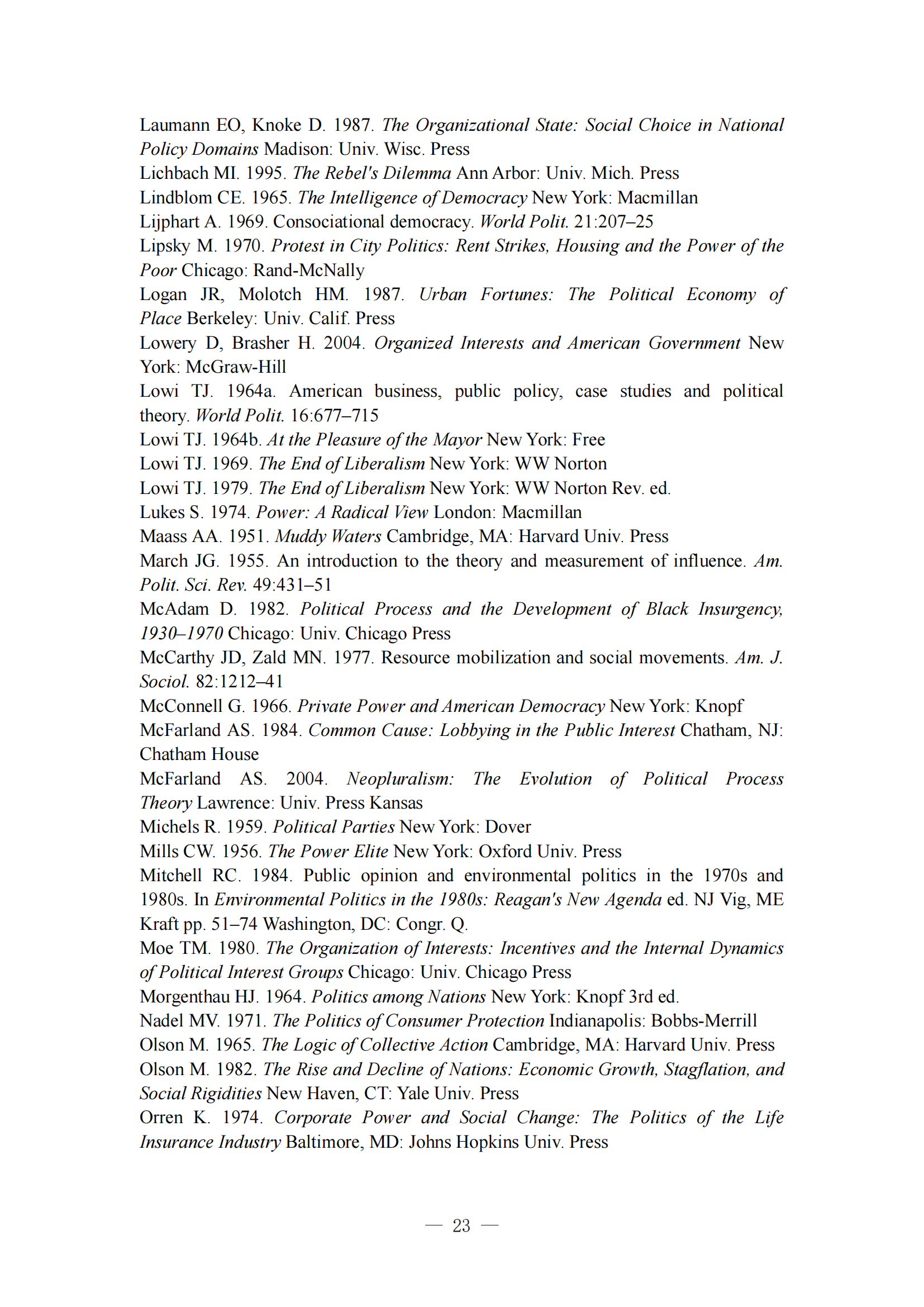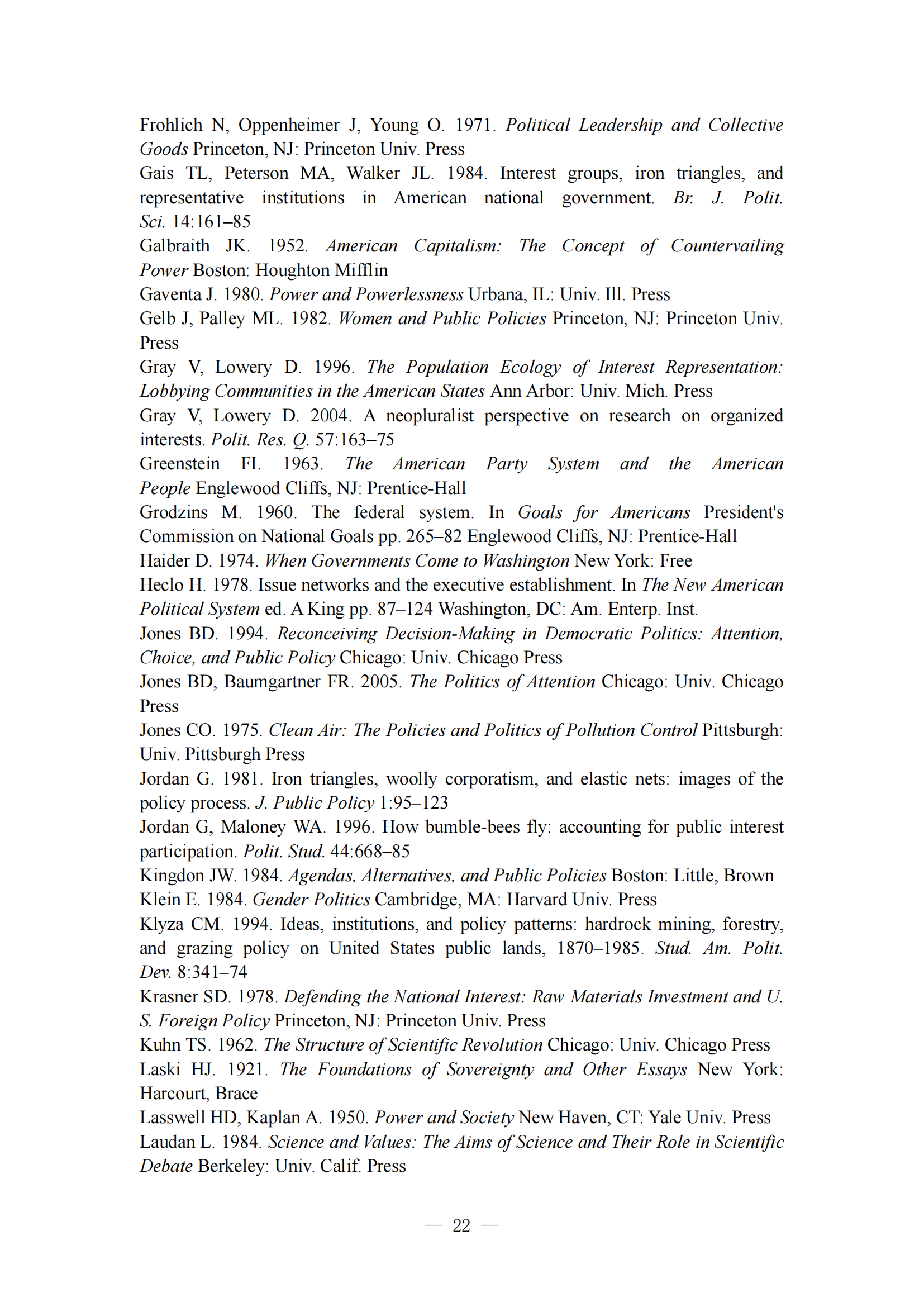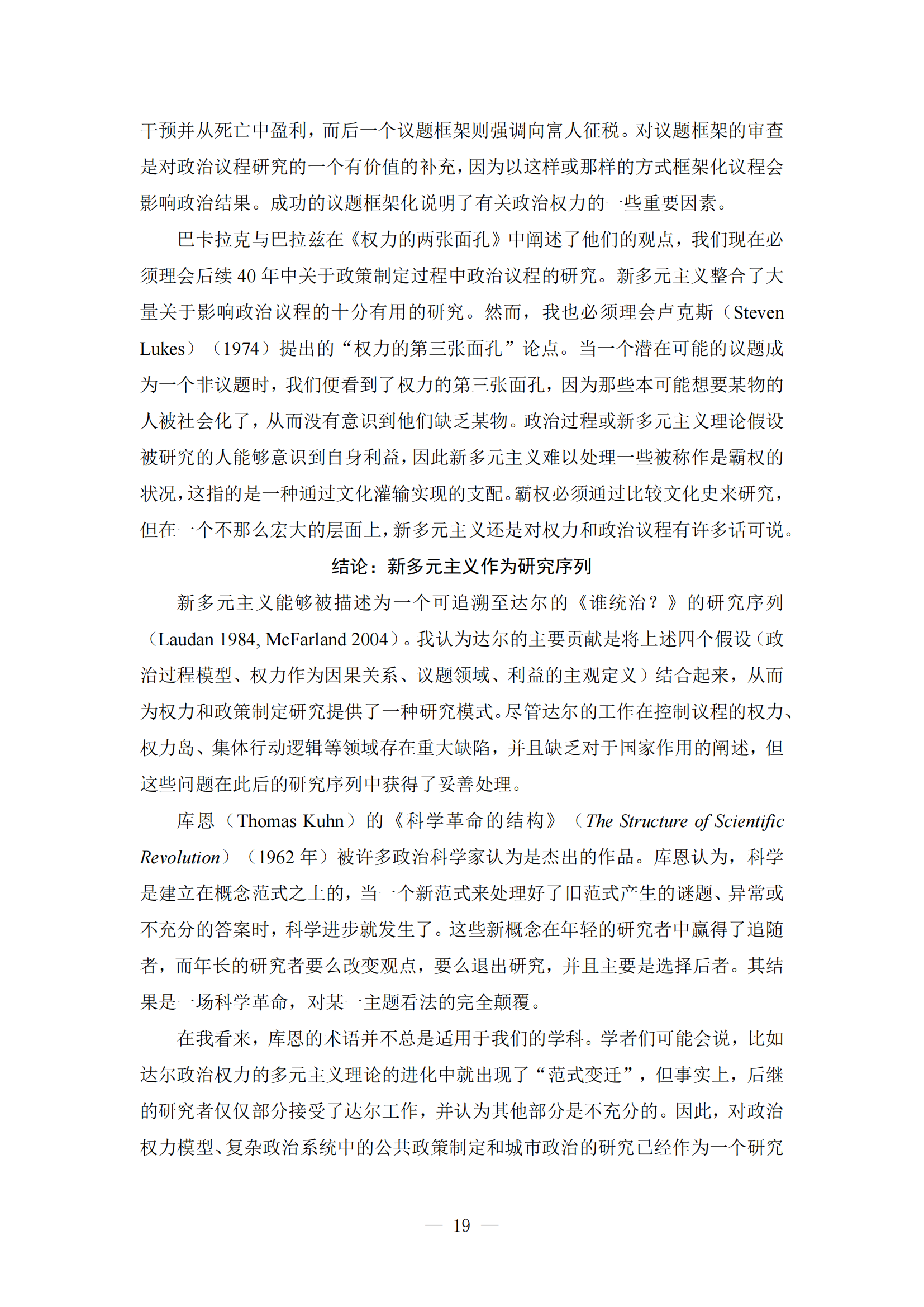 新多元主义同精英主义、多元主义和法团主义等一样,在涉及公共政策领域中的权力结构和政策制定的一众研究发现和社会科学模型中占有一席之地。发端于罗伯特·达尔在《谁统治?》(1961)中建构的多元主义模型,新多元主义通过去除或是修正达尔的一些想法,并同时增添了对于议程建立、集体行动逻辑、具有特殊利益的次政府、倡导联盟和政治过程理论的关照,从而得以在美国政治研究中不断演化。尽管新多元主义通常是关于政治系统中复杂行动的发现,但是新多元主义既不假设这种复杂性暗示了代表制的公平性,也不假设利益集团的存在将消解政府机构的自主行动。