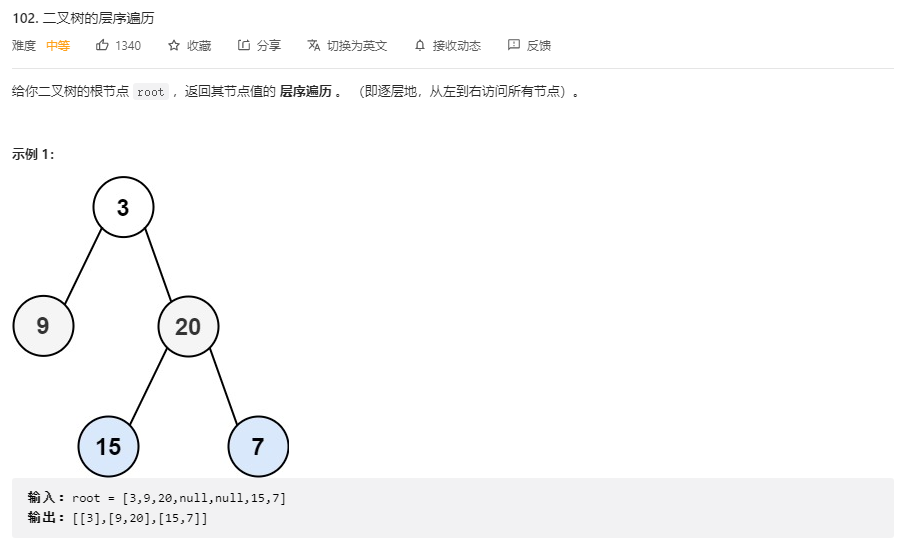 链接:https://leetcode.cn/problems/binary-tree-level-order-traversal/