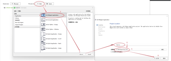 我们打开Qt Designer后会看见如下图4的界面,我们点击”New”新建一个工程。接下来需要选择这个项目的一个模板,这这里我们就选择同种2所示的模板,选择好之后我们需要填写项目名称以及项目的存放路径。