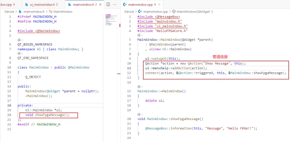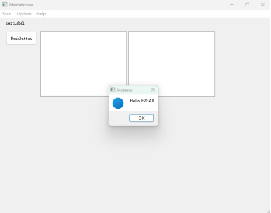 QMessageBox::information(this, "Message", "Hello FPGA!!");