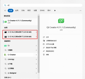 我们点按一下键盘上的Win,接着选择之前需要打包的编译器版本相同的终端,在这里我是用的是64bit的终端,打开之后路径会默认为qt的安装路径,因此我们需要更改到exe所在的文件夹。