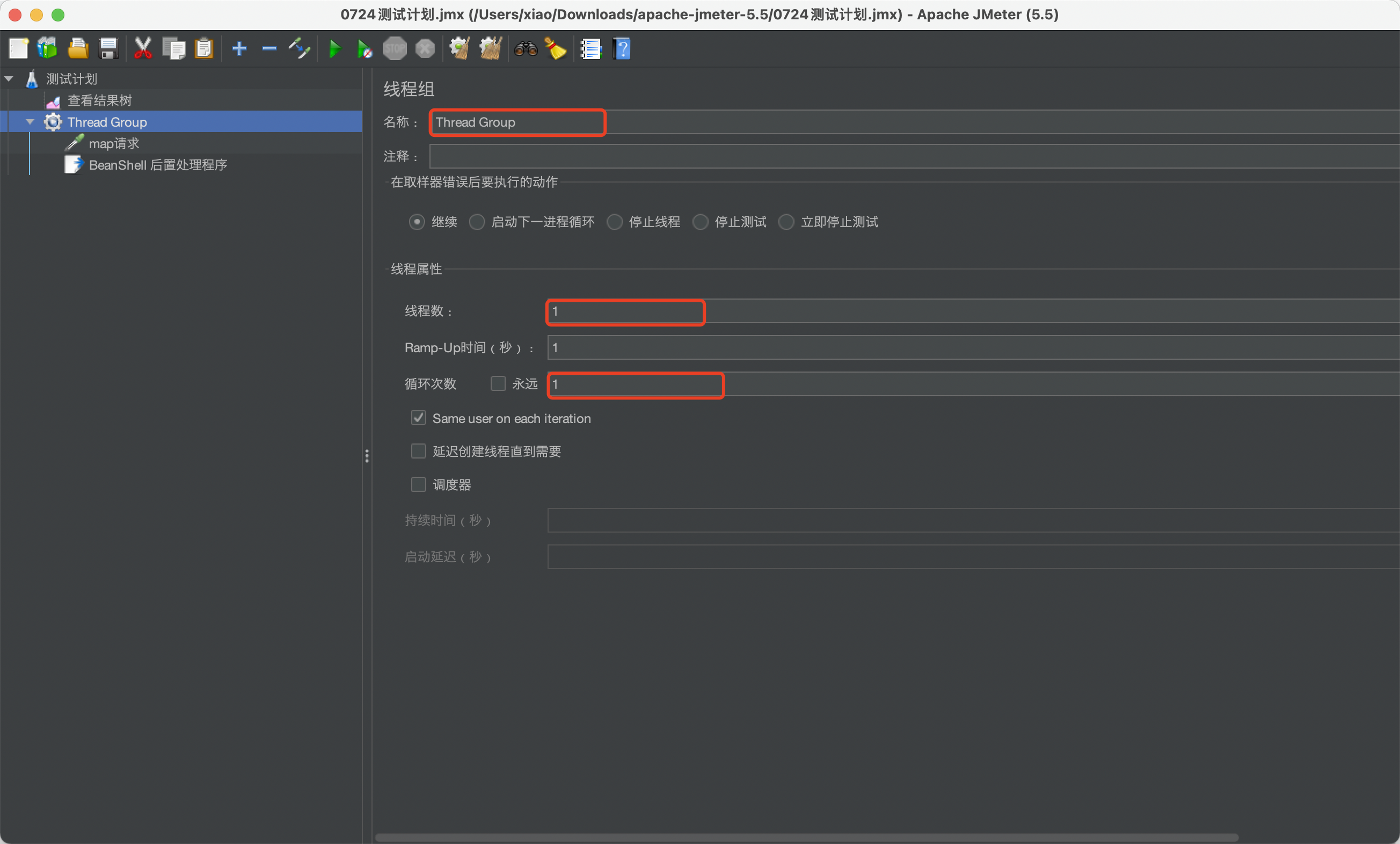 Ramp-Up时间(s): 表示多少时间内启动线程,比如线程数100,Ramp-Up设置为10,表示10秒内启动100线程,不一定是每秒启动10个线程
