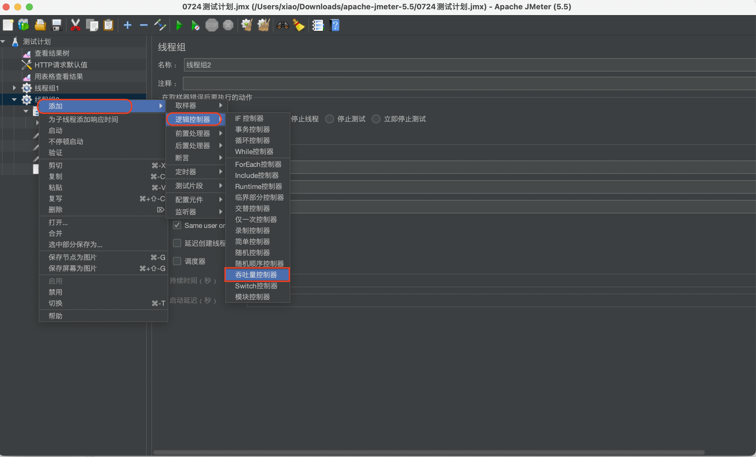 1)测试计划右击-->添加-->线程(用户)-->线程组