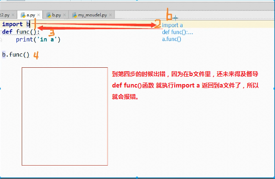 还有这种方式 在两个文件里相互import 这时候就会出错,出错原因如下:-----模块之间不可以发生循环引用的问题