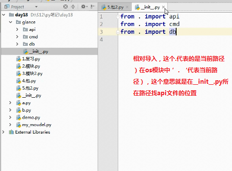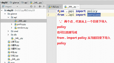 相对导入:有个优秀是不会随着文件的主次级变化而找不到模块 导致报错,例如将glance包放在一个aaa文件下