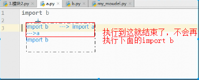 如果是下面这用情况:在a模块里引用b模块,在b模块中引入a模块,它并不会进入死循环,而是满足模块只导入一次的原则,在添加到sys.modules之后 ,就不会再进行添加,结果如下