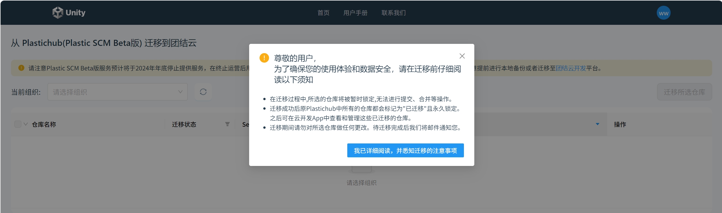 本次项目迁移,是由于Plastic SCM Beta版预计将于2024年年底停止提供服务,我们在Plastic SCM Beta云端仓库内上传的项目会被删除,所以需要将项目仓库迁移至团结云。