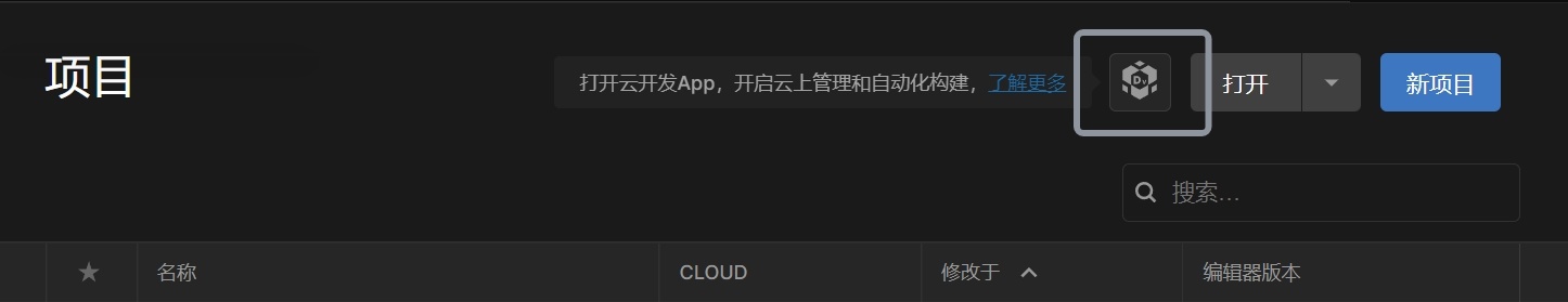 在最新版本的Hub项目页面,点击团结云开发图标,开始下载并安装团结云App。安装完成后即可使用。