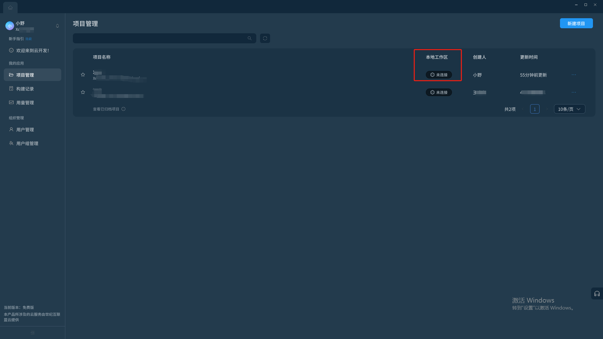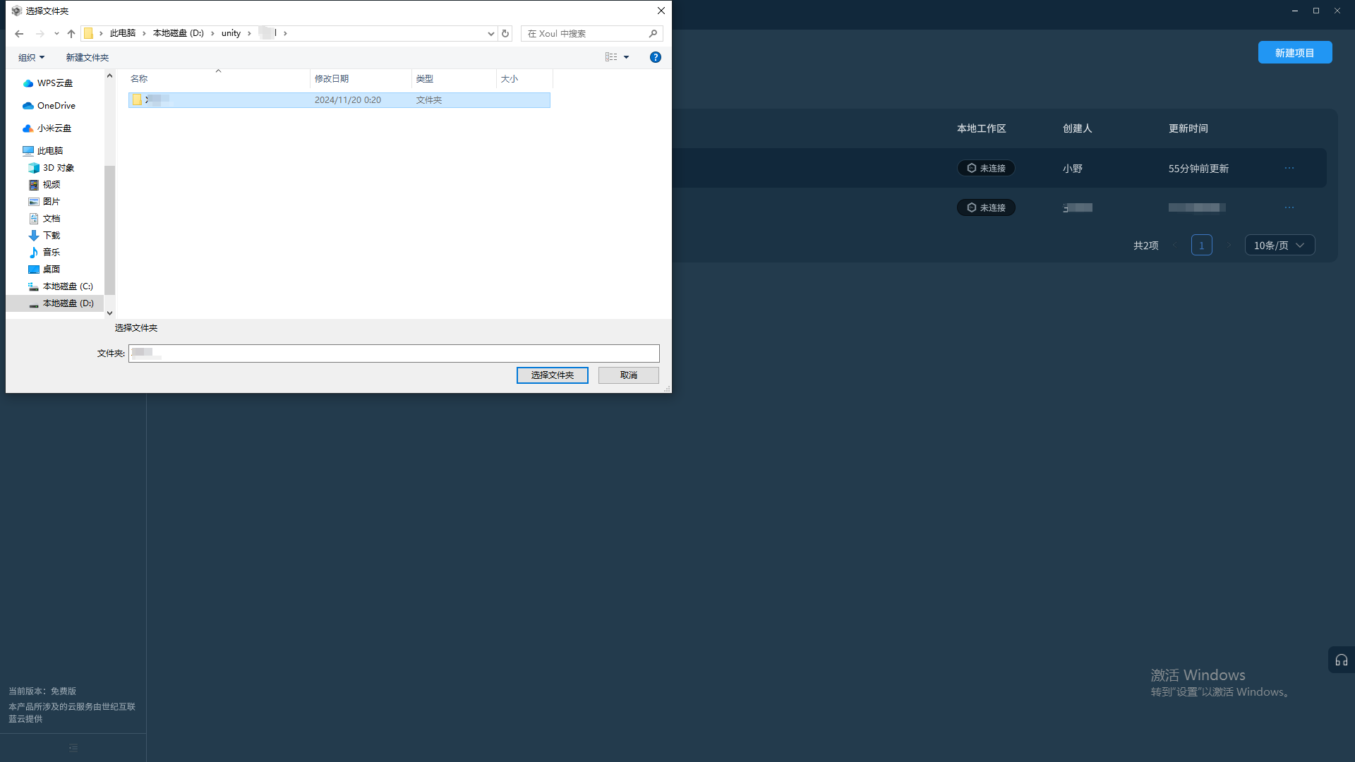 我们查看项目管理,会发现此时本地未连接。点击未连接后会提示选择文件夹,我们选择游戏项目的本地文件夹。