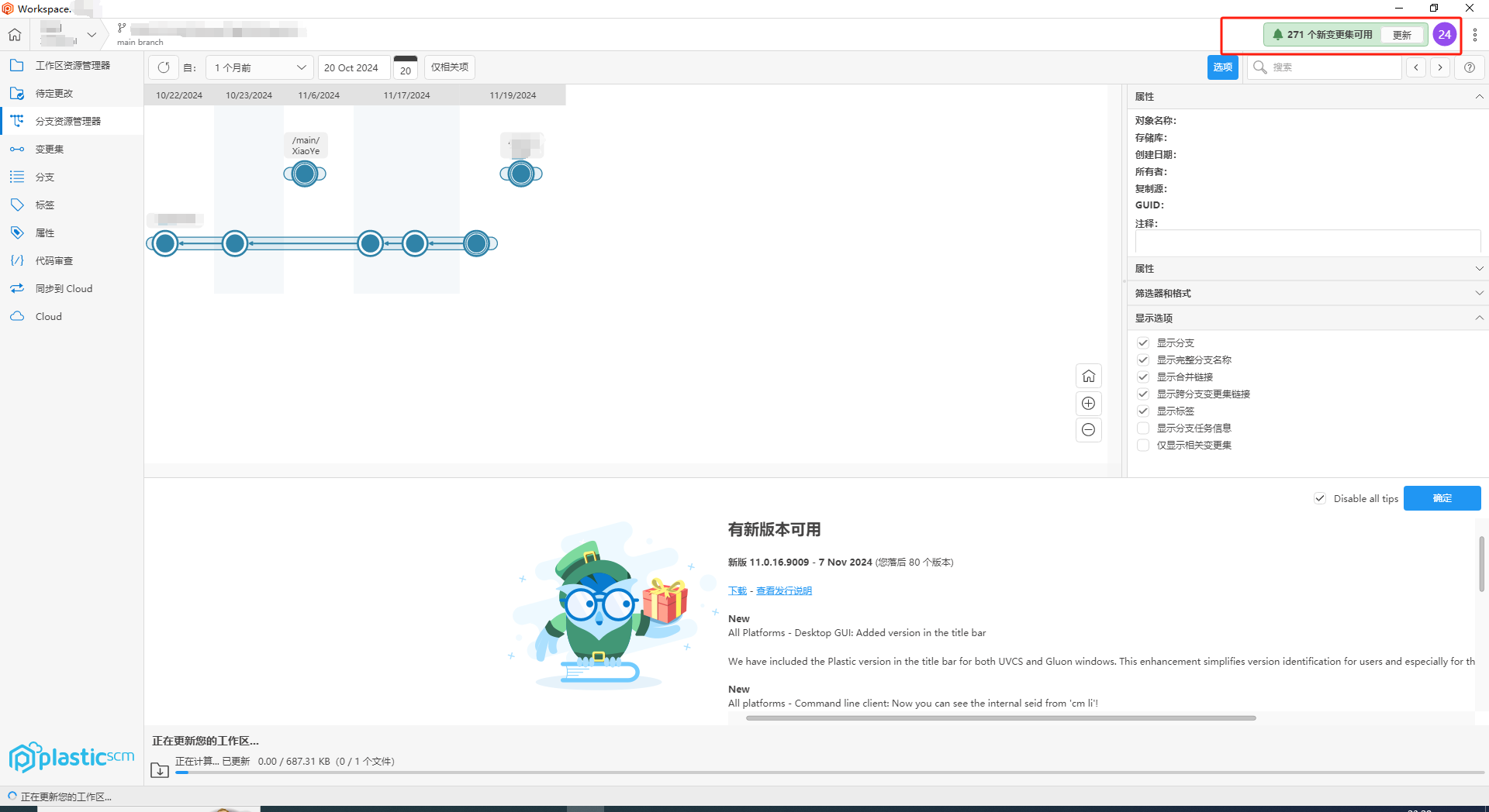 下载后打开,可看到项目情况。打开迁移完毕的项目,其继承了Plastic SCM变更情况。