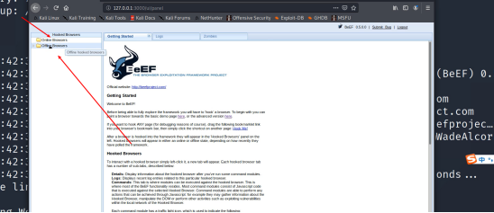 3.6 beef-xss渗透框架启动成功,如下图所示。